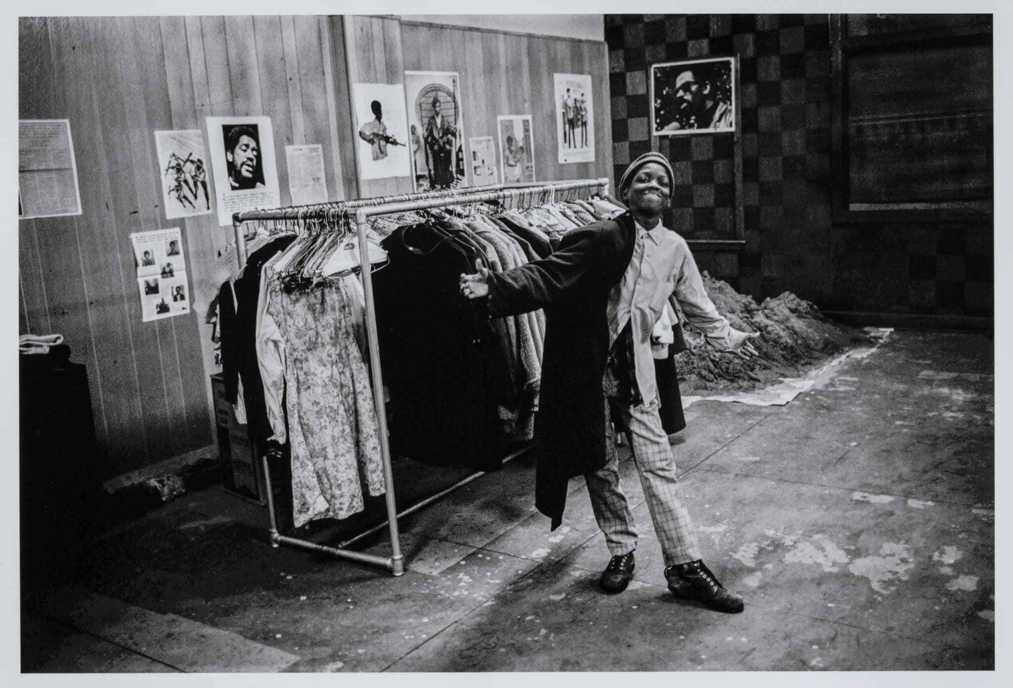 Stephen Shames, Toledo, Ohio: Free Clothing Program, one of the Panther Party’s Community Survival Programs. A proud young boy tries on a winter coat to take home., 1970. Archival pigment print. Gift of Lizbeth and George Krupp. Courtesy Museum of Fine Arts, Boston.