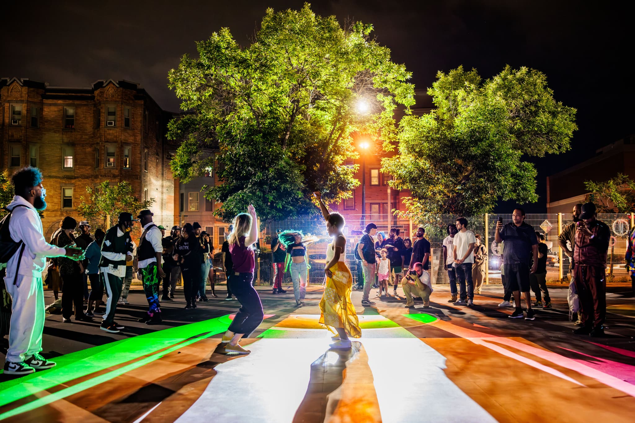 Dance Court (2022) at Mary Hannon Park sponsored by the Design Studio for Social Intervention and the Mayor’s Office of Arts and Culture. Produced and organized by Ashton “Stiggity Stackz” Lites from Stiggity Stackz Worldwide. Projections and staging by ILLUMINUS. Photography by Aram Boghosian.