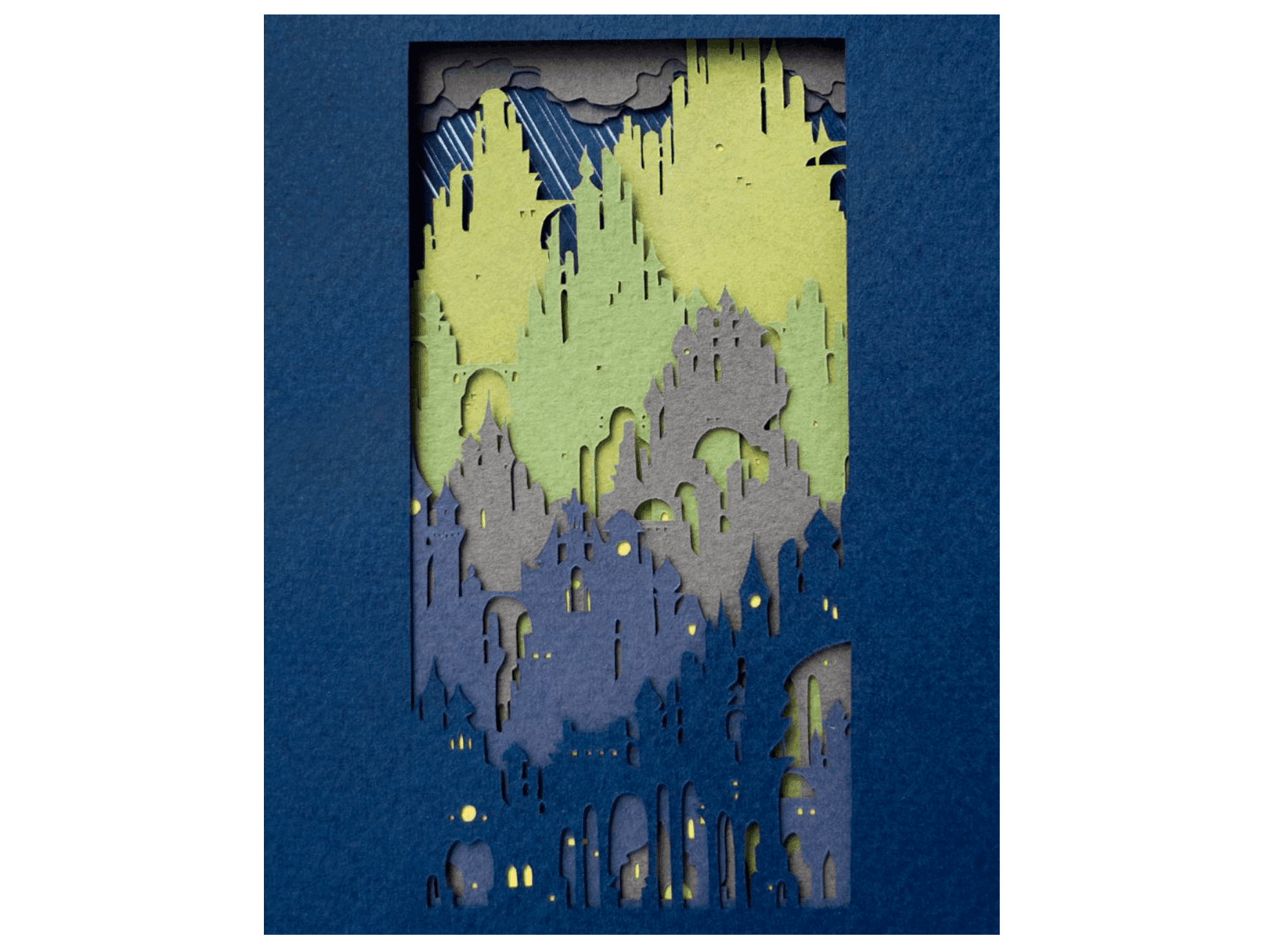 Hazel Glass, After Dark Our Dreams Collide, 2019. Handcut paper, 2″x4″. Photo courtesy of ShowUp.