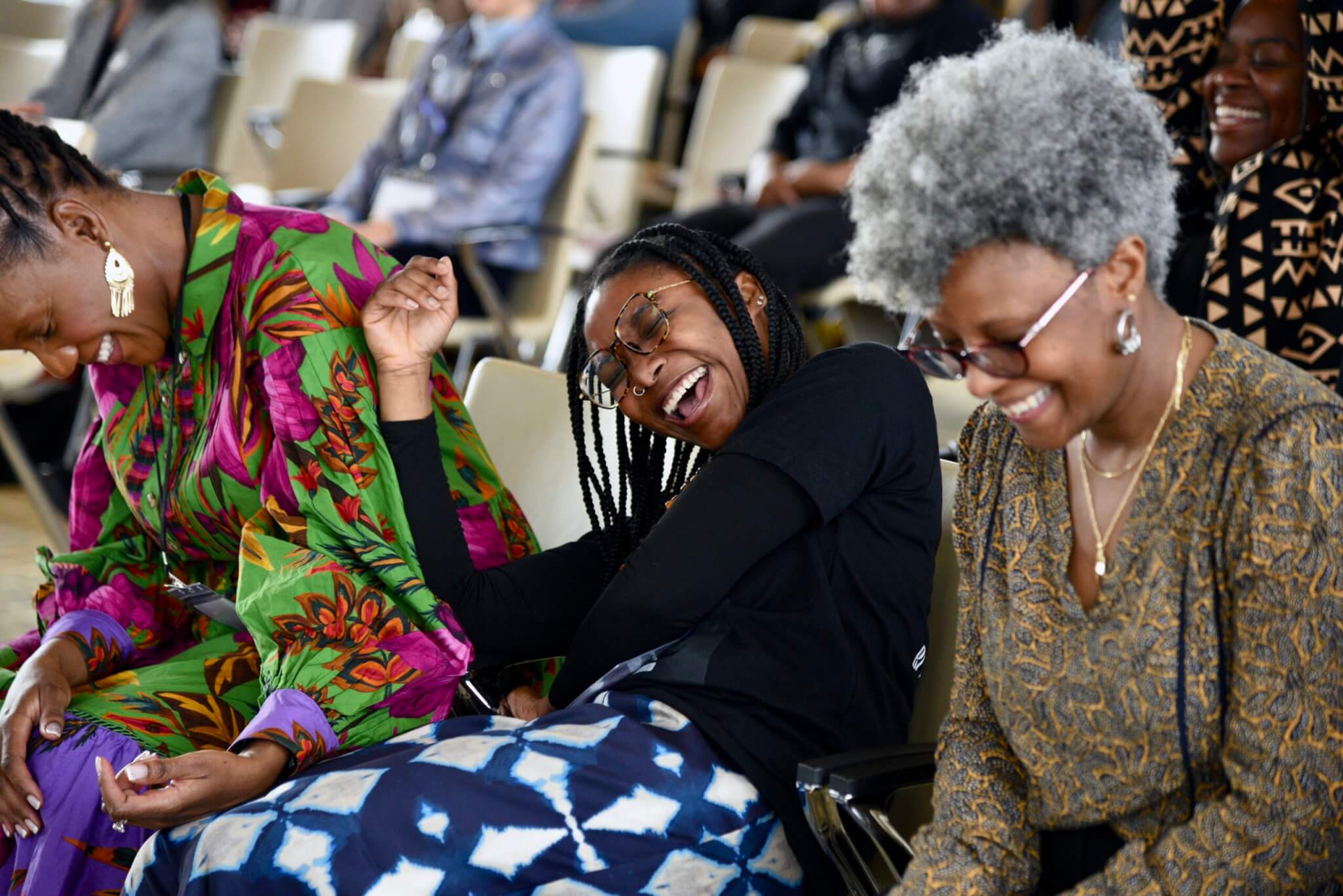 (left to right) Régine Michelle Jean-Charles, Delita Martin, and Terri Lyne Carrington during the keynote conversation, “Talking Art,” at Northeastern University’s fifth annual bell hooks symposium. Photo by Vania J. Arroyo. Courtesy of Northeastern University.