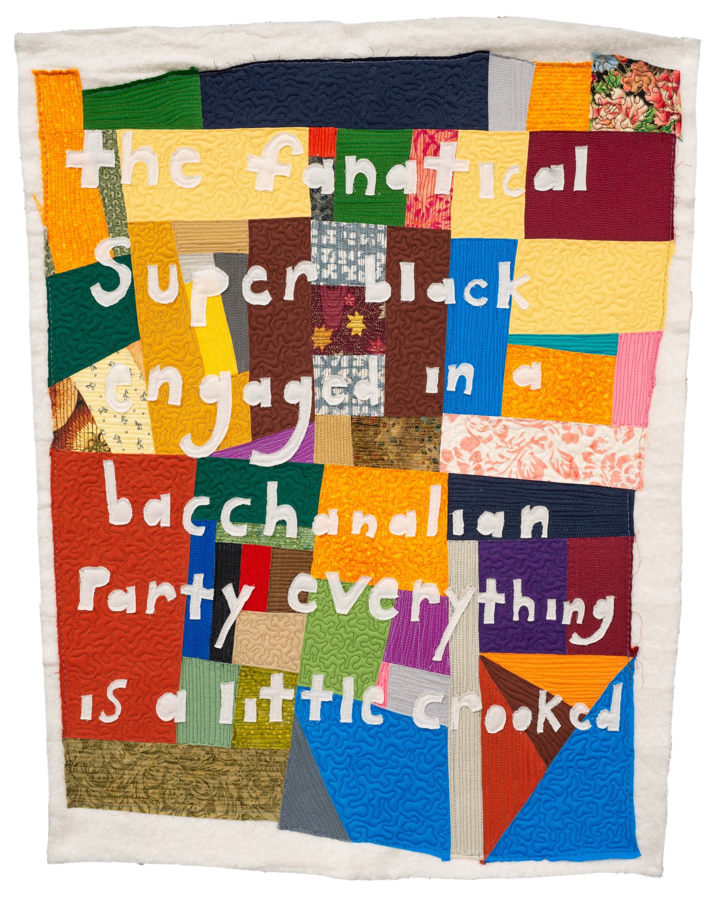 Michael C. Thorpe, The Fanatical Super Black, 2021. Fabric, quilting cotton and thread. 26 x 19.5 in (66 x 49.5 cm). Image courtesy of LaiSun Keane.