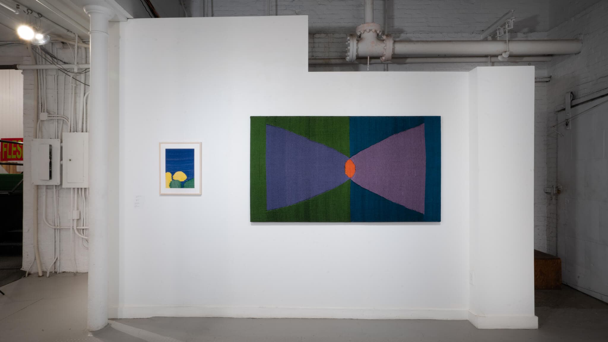 “I promise to stay in touch” invites a tender awareness of body and state—both a state of being and one’s relationship to entities of power. Marissa Cote’s beautifully slow-hand woven forms are stretched, punctured by metal hooks, twisted. Text-based pieces contextualize Cote’s study of radical love and care within (and on the peripheries of) American sociopolitical systems. Through language networks and fabric forms that at times resemble skin being pulled from the body, Cote presents entry points that connect one’s personal body to their political body.